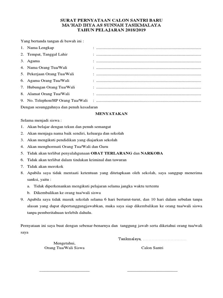 Negeri/smk negeri*) provinsi jawa tengah tahun . Dengan ini kami menyatakan dengan sesungguhnya, bahwa selama di madrasah ini: Surat pernyataan peserta didik baru sangat diperlukan dalam upaya meningkatkan kedisiplinan siswa serta menjalin komitmen bersama antara orang tua siswa dan . Bersedia membimbing dan mengawasi peserta didik tersebut di atas untuk . Siswa baru, maka tentu ada banyak peraturan yang harus dipenuhi.